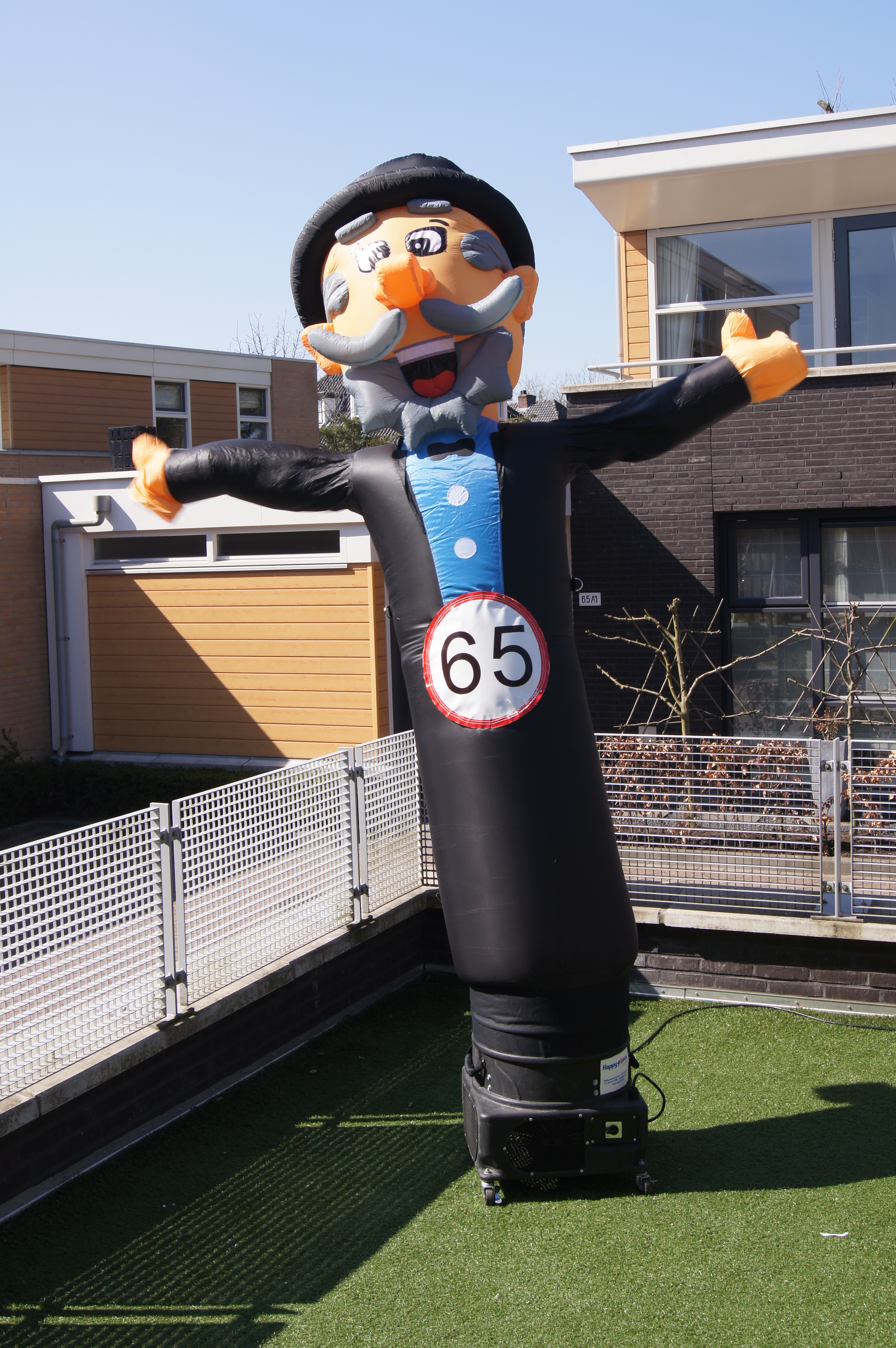 Deze Skydancer Sarah van 3,5 meter trekt zeker de aandacht. Een originele manier om het feest niet ongezien voorbij te laten gaan. Door de krachtige blower beweegt Sarah haar armen en lijf — vandaar de naam: skydancer. Toepasbaar bij alle leeftijden (banner is verwisselbaar). Gemakkelijk hanteerbaar, eenvoudig op te zetten. Past in iedere auto en werkt op normale stroomvoorziening.