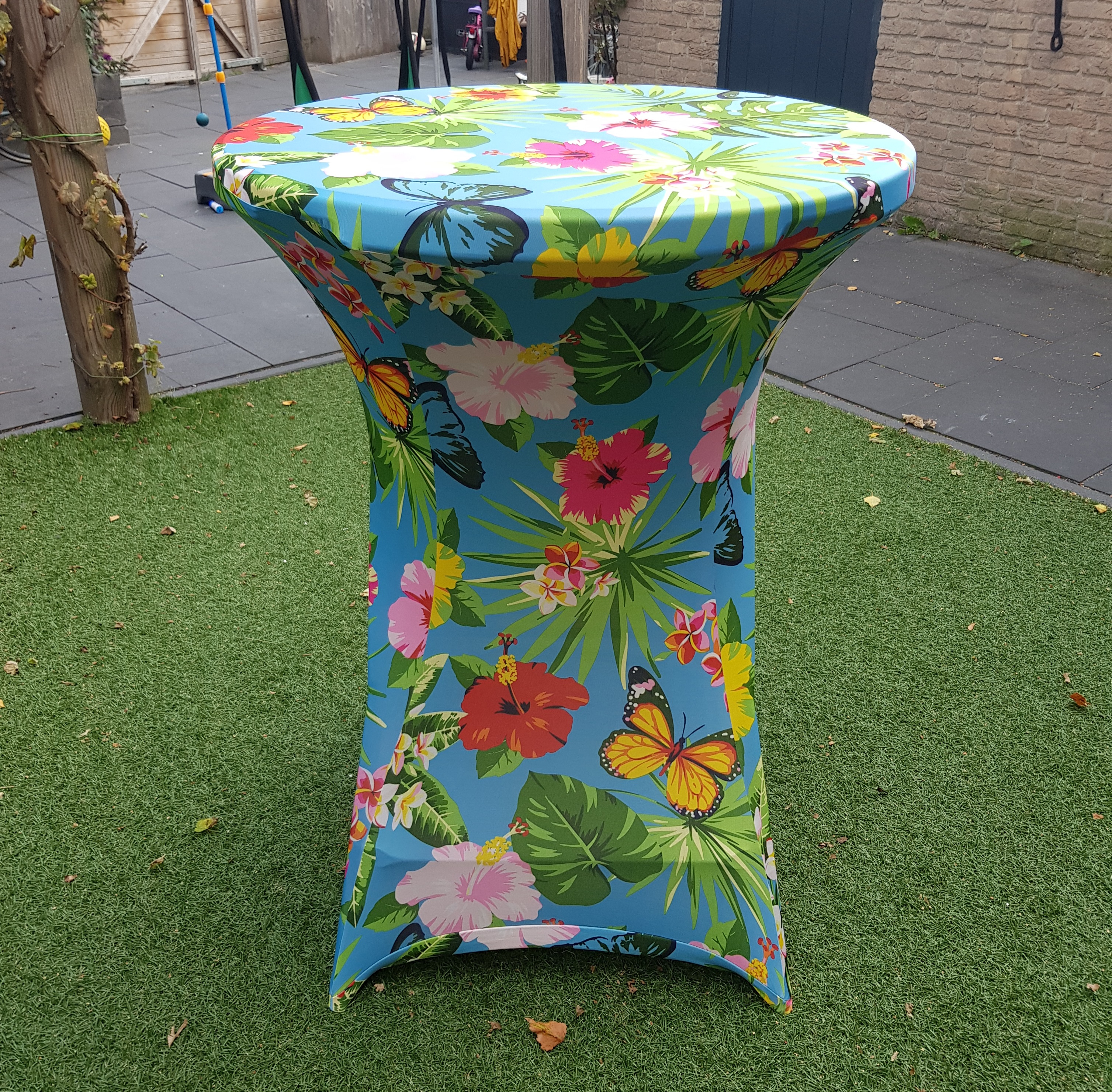 Een statafel is handig voor ieder feestje. Ideaal voor het serveren van hapjes en drankjes of om ontspannen aan te praten. Huur de statafel met deze vrolijke statafelrok met flamingo print voor een extra feestelijke uitstraling. Of combineer met een van onze andere kleuren.